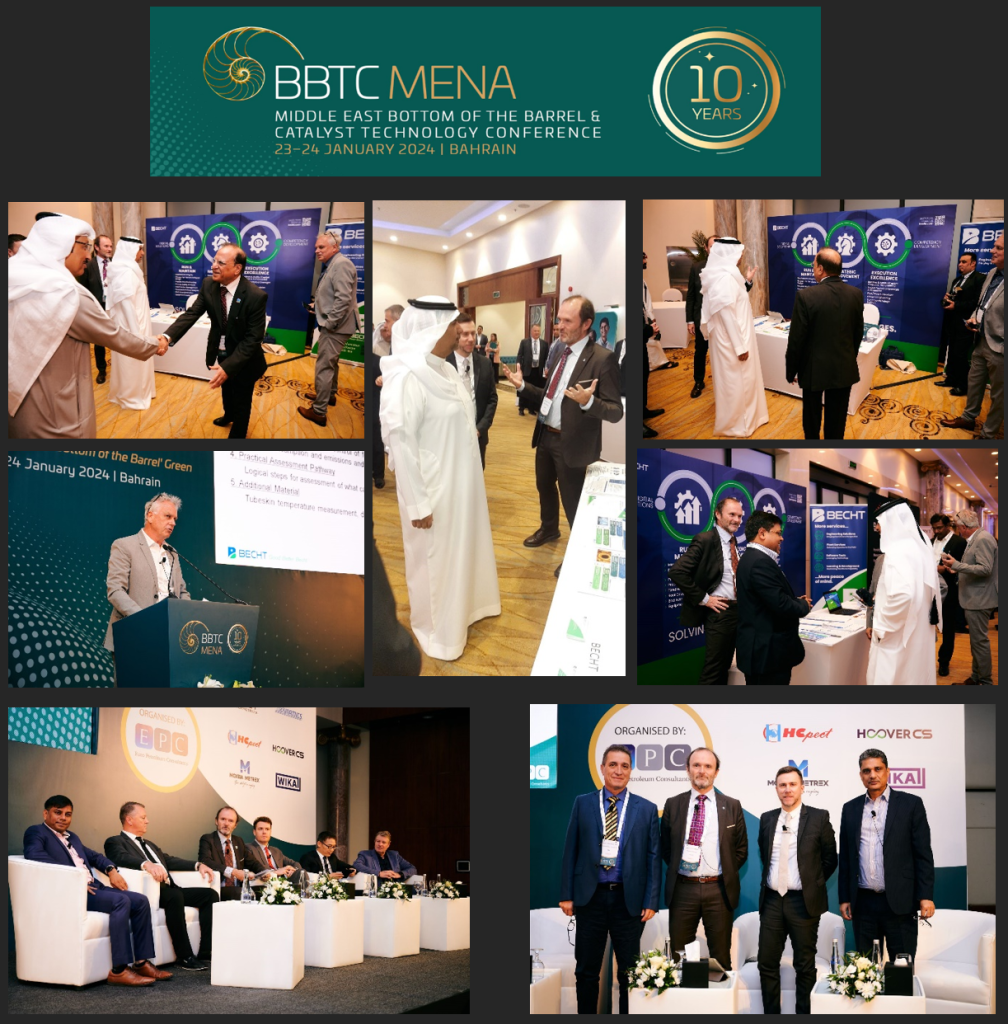 Becht participated in the 10th Bottom of the Barrel Technical Conference (BBTC MENA) as a bronze sponsor in January 2024 in the Kingdom of Bahrain. This event was attended by 28 speakers, 104 delegates, and a dozen exhibitors.
