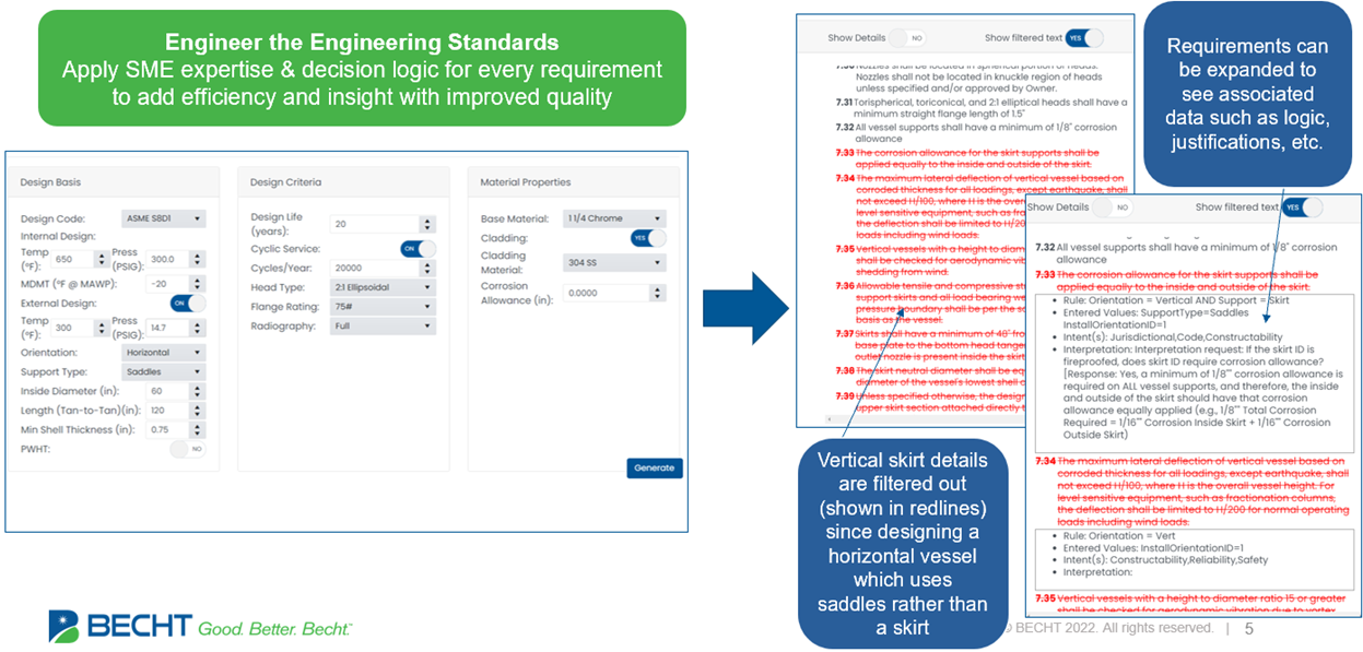 This is done with integrated logic to filter out non-applicable requirements, solving the issue of large packages that require extensive time to review and decipher which apply to each specific application.