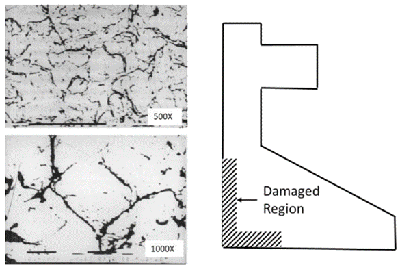 Figure 4.  Microstructural damage observed in nozzle.  Reproduced from [1]