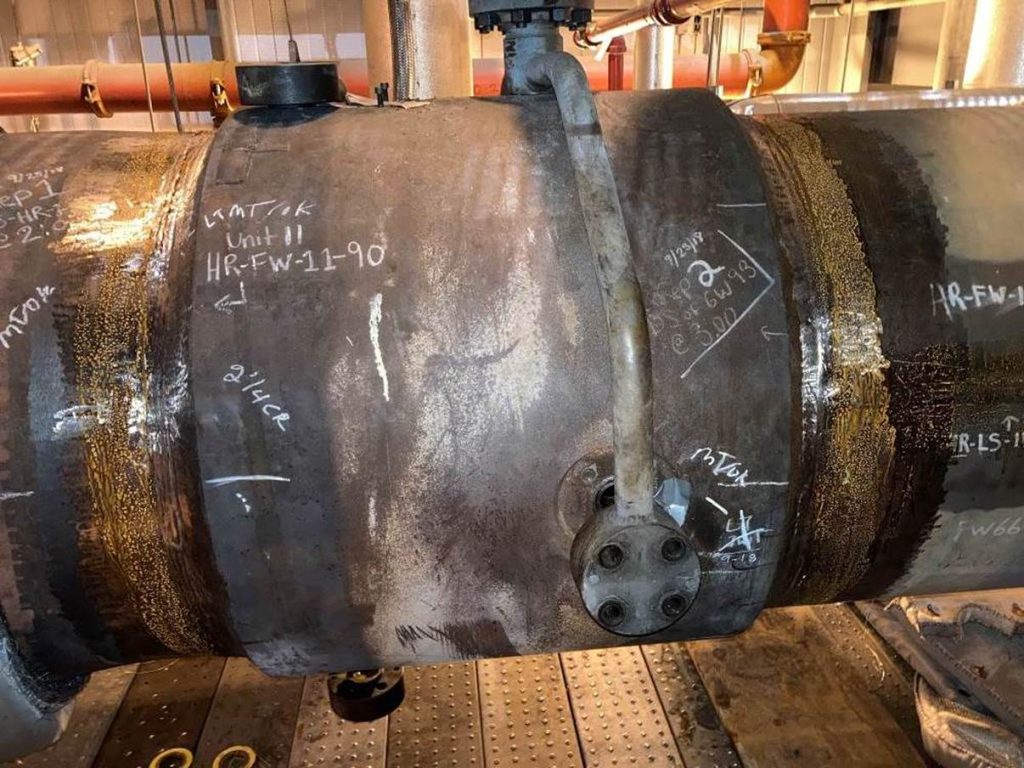 This case study involves a combined cycle power plant that went into commercial operation in 2003 and has well over 100,000 hours of operation.  The combustion turbines cycle over 100 times per year to meet market demand.  During cycling, the hot reheat steam bypasses the steam turbine and is routed to the condenser thru a pressure control valve and desuperheater.  This plant has a history of cracking in the downstream pipe to desuperheater welds over the last several years.